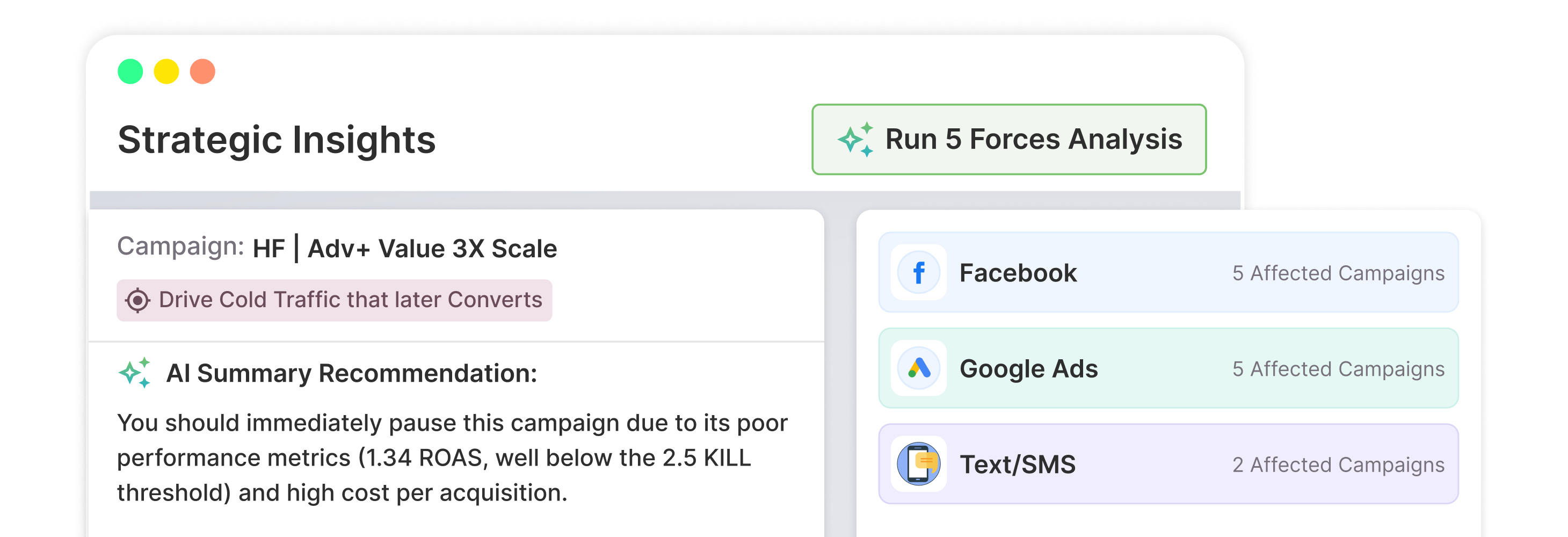 Nightly strategic analysis that surfaces Scale / Chill / Kill picks and tactical fixes. Save 10 hours of analysis a week.